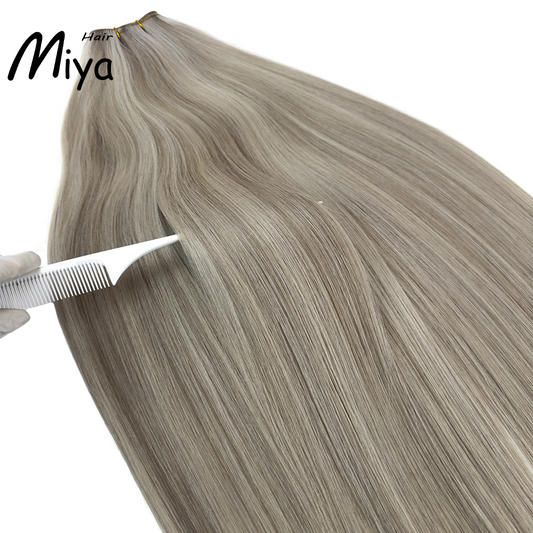 Piano Hair Highlight Silver Gray Genius Weft Best Quality Double Drawn 100% Cuticle Aligned Human Hair Extensions 16-30inch From One Donor Virgin Hair Remy Hair