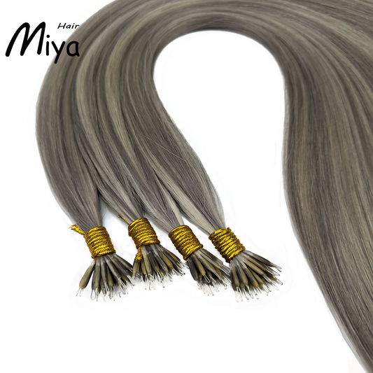 Silver Gray Piano Highlight Nano Ring Hair Best Quality Double Drawn 100% Cuticle Aligned Human Hair From One Donor 16-30inch Nano Bead Hair Extensions Nano Hair