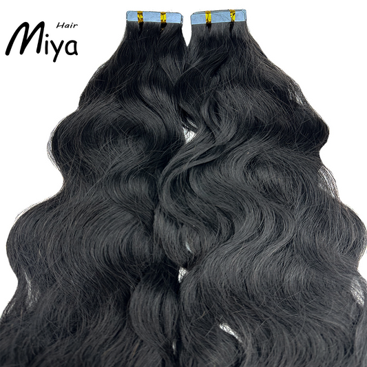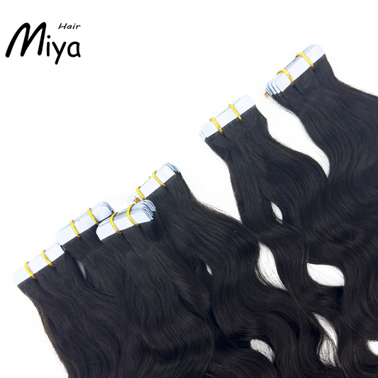 Body Wave Tape Hair Natural Black Virgin Hair Tape Ins Best Quality Double Drawn 100% Cuticle Aligned Human Hair From One Donor 16-30inch Tape In Hair